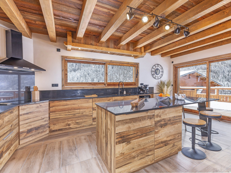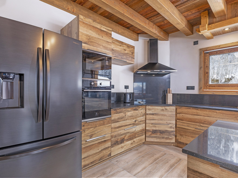 open keuken naar woonkamer (vaatwasser + koelkast met vriesvak + inductiekookplaat + oven + magnetron + 2 koffiezetapparaten + broodrooster + waterkoker + 2 racletteapparaten + 2 fonduesets + mixer); open haard; Smart TV (incl. Netflix); gratis wifi; 3 haardrogers; 3 handdoekrekken; wasmachine; wasdroger; vloerverwarming; terras; balkon; skiruimte; elektrische droger voor skischoenen.