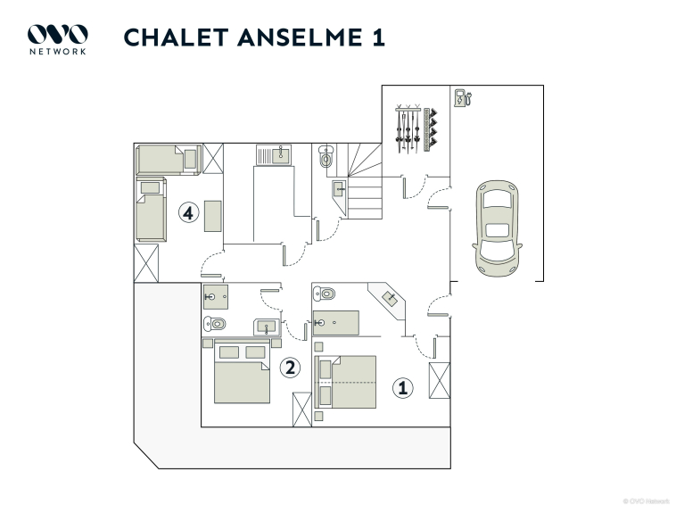 Chalet Anselme is een twee verdiepingen tellend huis voor 10 vakantiegangers, met vier slaapkamers, vier badkamers en een mezzanine / speelkamer.