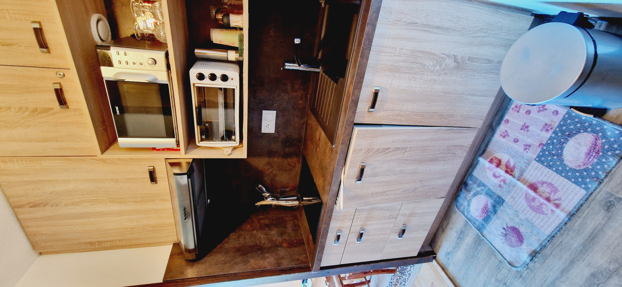 Het appartement is volledig uitgerust met een koelkast, 2 kookplaten, magnetron, mini-oven, vaatwasser, broodrooster, waterkoker en tassimo koffiezetapparaat, zodat je op je eigen houtje kunt genieten van je verblijf.