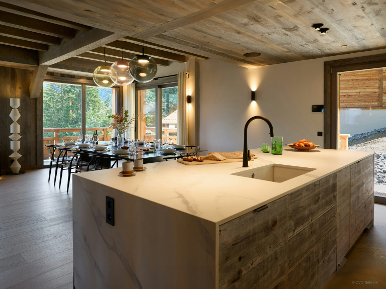 Gebouwd op een skipiste met uitzicht op het rustige dorpje Saint-Nicolas-de-Véroce, is het de perfecte plek voor een gezin of een groep vrienden die willen genieten van de wintersport. Maar ook aan het eind van de dag zul je de serene sfeer waarderen. Het is maar 150 meter naar de lift tussen Megève en Saint-Gervais. Bij goede sneeuwcondities kun je het chalet echter direct op ski's verlaten.