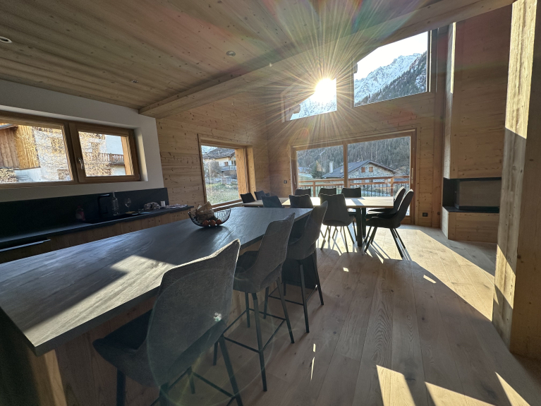 Nieuw, ruim chalet midden in het Paradiski gebied, Peisey-Nancroix, 1500m hoogte. Toegang tot de skiliften in 5 minuten met de pendelbus op 30m afstand, elke 25 minuten. Toegang tot de Nordic site in 5 minuten te voet of via de shuttle, aan de poort van het Vanoise natuurpark.