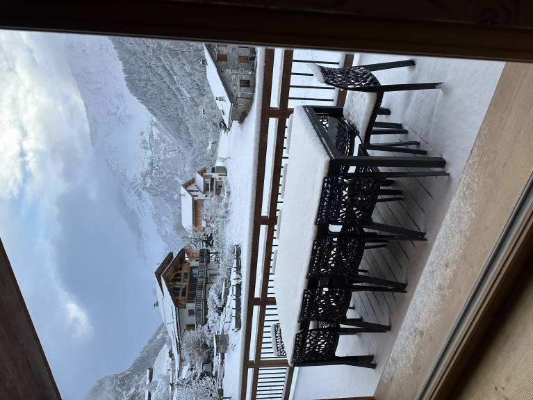 Ruime woonkamer met prachtig uitzicht op de noordkant van Bellecote, open haard.