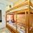 woonkamer met slaapbank - kitchenette - gerenoveerde badkamer - aparte WC - bergruimte met stapelbed.