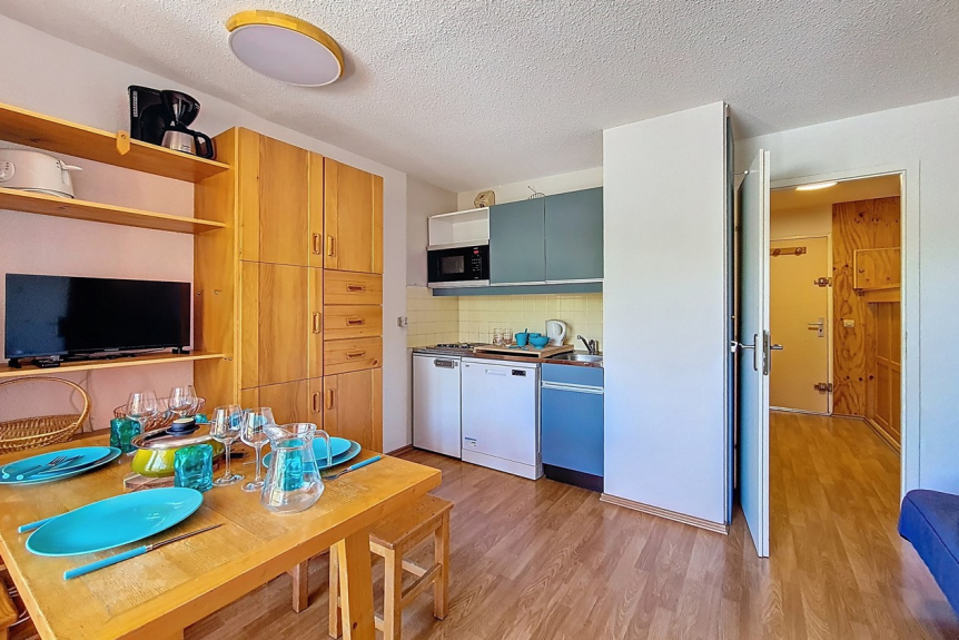 Appartement 2-kamers 28 m² voor 4 personen met balkon op het westen. Het is gelegen op de 4e verdieping met lift. De flat heeft elektrische rolluiken. Het wordt verhuurd met parkeerplaats.