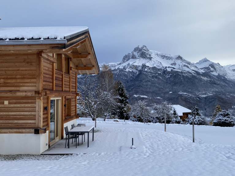 Een chalet van 90 m² met een adembenemend uitzicht op het Mont Blanc-massief, het Fiz-gebergte en het Aravis-gebergte.