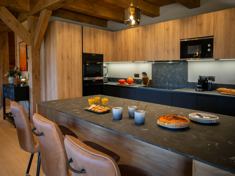 Chalet La Cachette heeft geen tuin, maar de grote aangelegde terrassen, zonnige balkons en dubbele garage zijn een echte luxe voor een woning zo dicht bij het centrum van het resort.