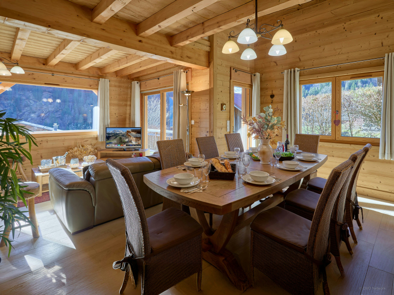 Chalet La Canopée domineert een afgelegen gebied van La Giettaz. Het twee verdiepingen tellende gebouw heeft vijf slaapkamers en vier badkamers en biedt plaats aan 10 personen.