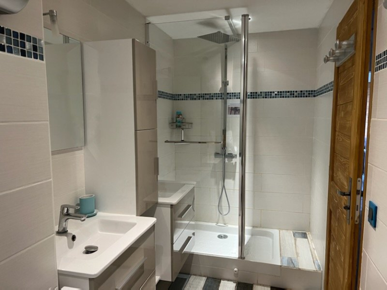 o Een badkamer met douche 120 * 80, 2 aparte wastafels, een 2e WC en een wasmachine