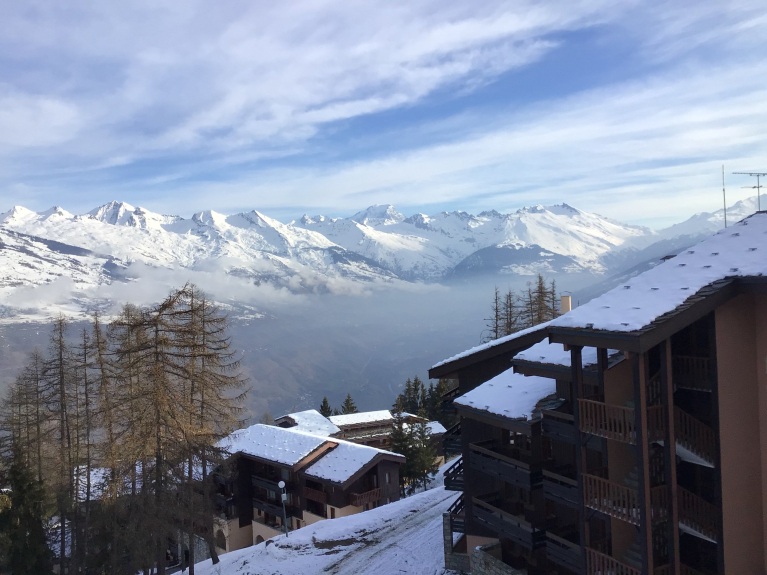 Schitterend uitzicht op de Mont Blanc en de vallei van Bourg St Maurice vanaf het balkon.