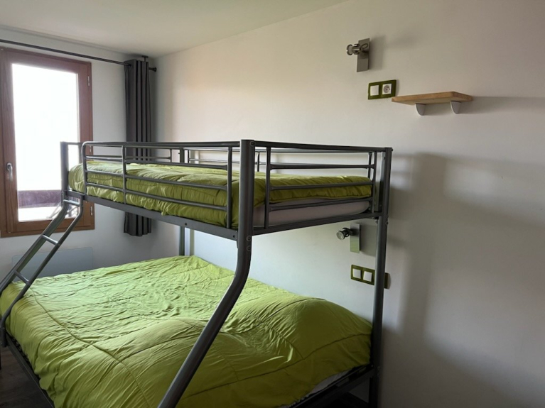 o Een slaapkamer met een mezzanine bed voor 2 personen (140x190) + 1 persoon (90x190) en een kinderbedje.