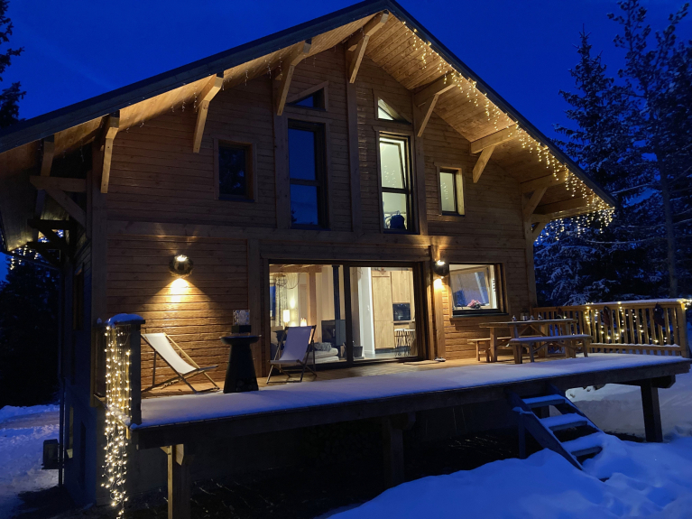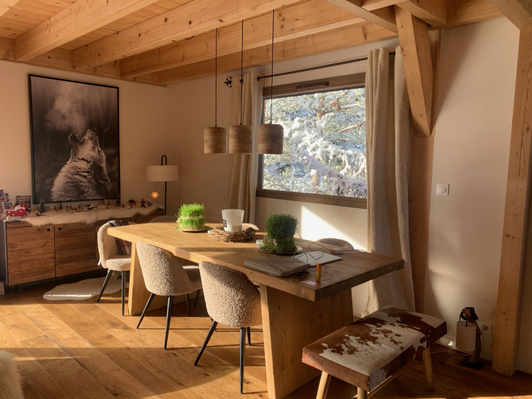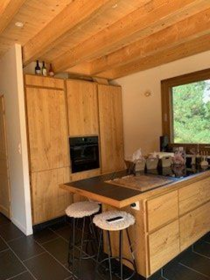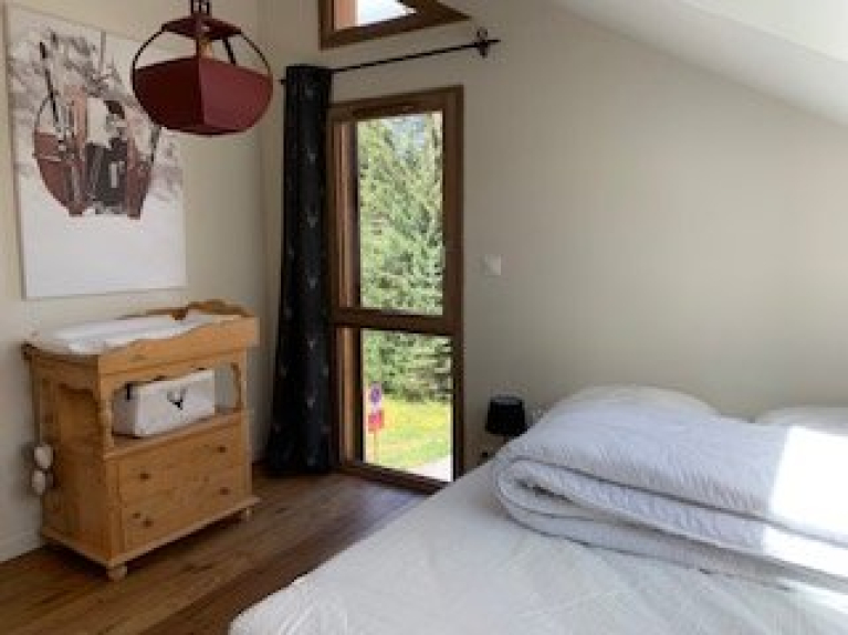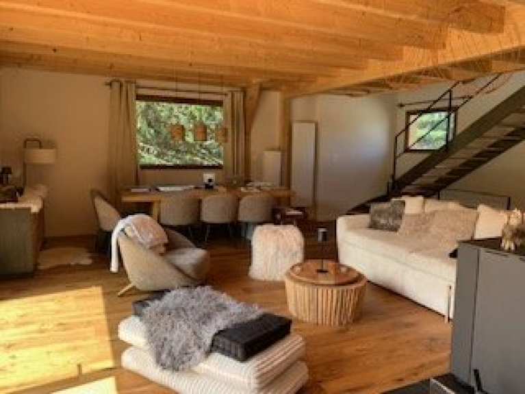 Ski in, ski out droom chalet, zeer lichte woonkamer met toegang tot groot terras, open haard, kwaliteit ingerichte en uitgeruste keuken, 3 slaapkamers met 160cm beddengoed, kinderbed, slaapbank, 2 badkamers, 2 toiletten.