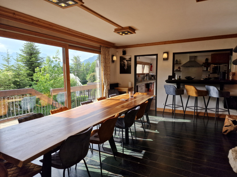 Chalet du Vernay is ideaal gelegen in een rustige, residentiële straat, zodat je van 's middags tot 's avonds kunt genieten van de zon, met een uitzonderlijk uitzicht op de Aravis en Fiz bergketens vanaf het terras, de jacuzzi en elke kamer in het chalet.