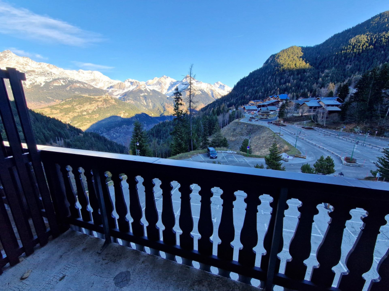 - Groot balkon met openslaande deuren met uitzicht op het Vanoise massief.