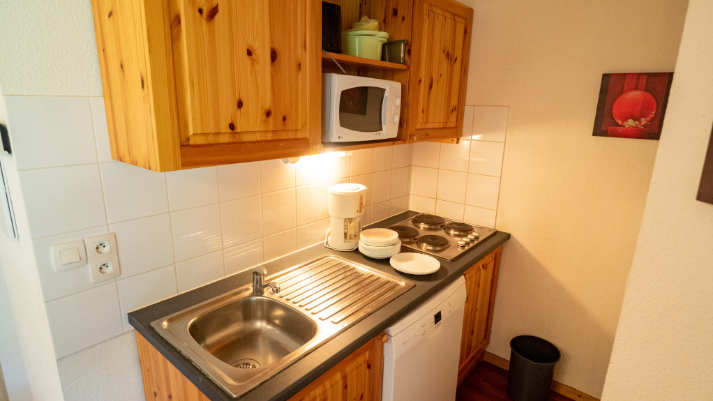 - Keuken open naar woonkamer: 4-pits elektrische kookplaat, magnetron, vaatwasser
