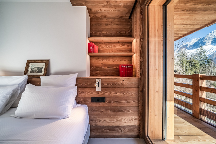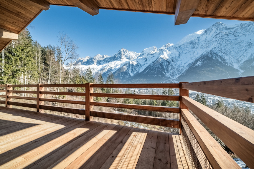 In een majestueuze omgeving met uitzicht op de Mont Blanc en de Aiguille du Midi, is Foxden een chalet van 200 m² voor maximaal 8 personen. Met zijn 4 slaapkamers met eigen badkamer, eigen tv-kamer en sauna, biedt het absoluut comfort voor een adembenemend panorama.