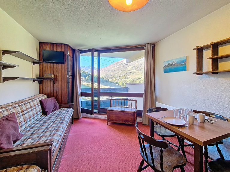 Studio 20 m² voor 3 personen. Deze bevindt zich op de begane grond en heeft een balkon op het zuiden.