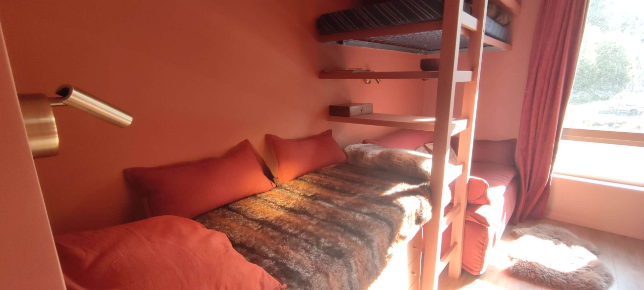 TVB19 klein, modern en gezellig studio-appartement, ideaal voor een ouder en kind, gelegen op de 2e verdieping met raam, op het oosten. Gelegen in de wijk "Front de Neige", aan de voet van de pistes, boven de Galerie Marchande en de activiteiten van het skistation. Woonkamer met slaapbank (140 cm) en 2 eenpersoonsbedden. Badkamer WC, volledig uitgeruste keuken.