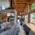 De leefruimte baadt in het licht dankzij de vele ramen en erkers. De zithoek is ruim en comfortabel, met twee grote banken tegenover een open haard en een tv met groot scherm. Een moderne, volledig uitgeruste keuken met aanrecht opent op natuurlijke wijze naar de rest van de ruimte.