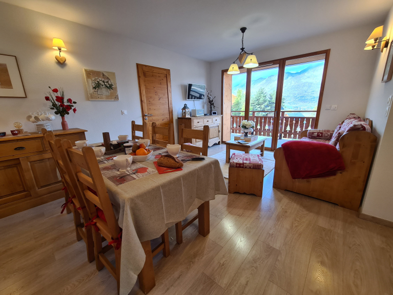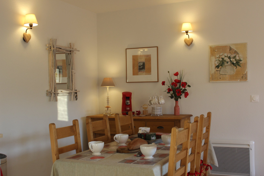 Dit appartement is volledig uitgerust, met een volledige keuken inclusief oven, kookplaat, grote koelkast/vriezer van 150 liter, raclette- en fondue-machines. Het komt uit op de lichte woonkamer en het terras van meer dan 11m².