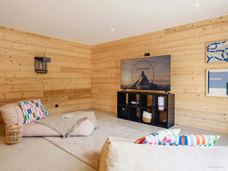 Dit niveau bevat ook een gezellige tv-lounge, een volledig uitgeruste wasruimte en een skiruimte met verwarmde droger voor schoenen, erg praktisch in de winter.