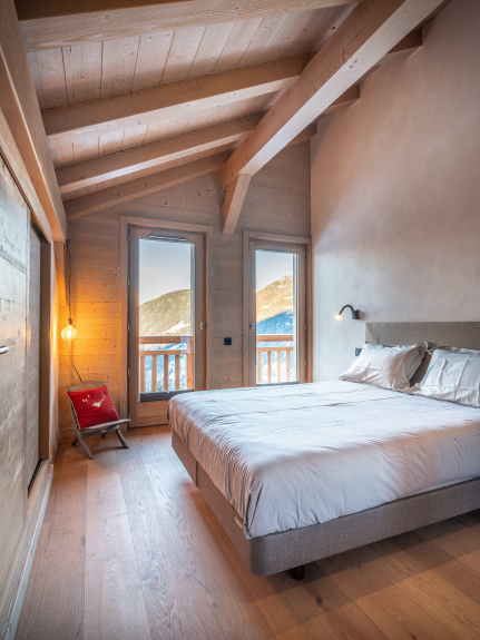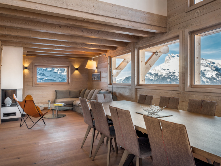 Groot familiechalet met terras, jacuzzi en uitzicht op de Mont Blanc, de Aravis en het Fiz-gebergte.