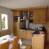 Amerikaanse keuken, koelkast met vriesvak, inductiekookplaat, magnetron, afwasmachine, betegeld werkblad, roestvrij stalen gootsteen.