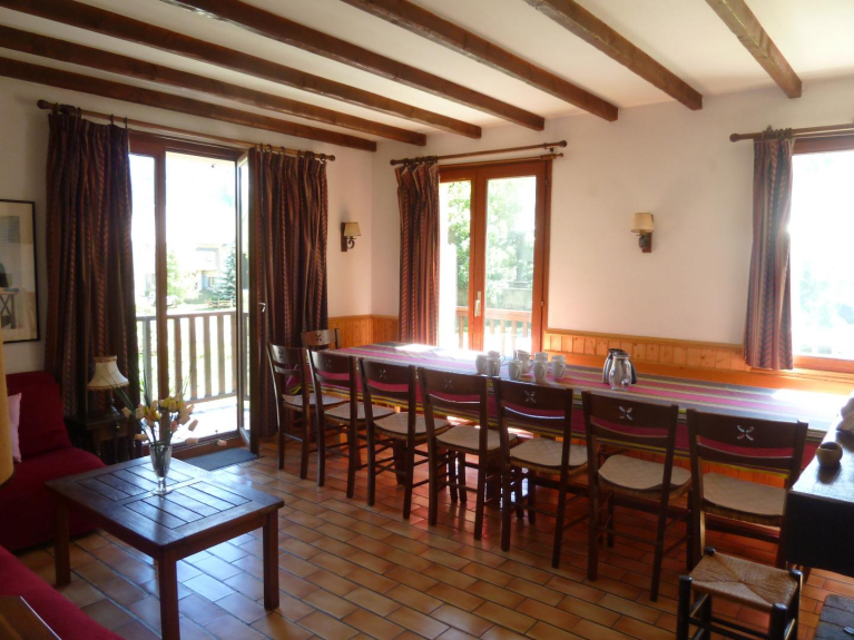Ideaal voor 2 of 3 gezinnen, 5 slaapkamers, 2 berghoeken afgesloten door een deur, woonkamer met open haard, onafhankelijke keuken, 3 doucheruimtes, 1 badkamer met douche, 4 toiletten (1 onafhankelijk), elektrische verwarming, ski-en fietsruimte, gratis WiFi-verbinding in het chalet"
