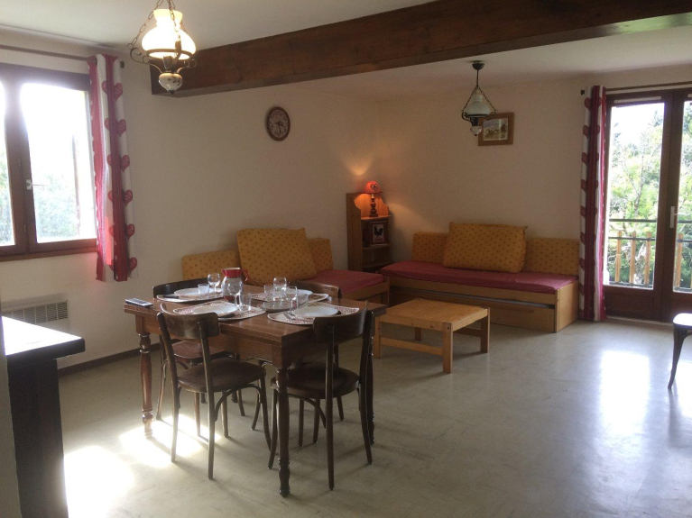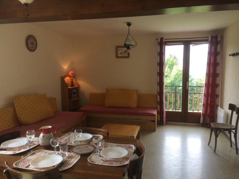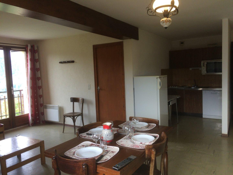 Het appartement, gelegen tegenover het Aravis-gebergte, heeft een ruime woonkamer (40m²), twee slaapkamers, een eigen parkeerplaats, wi-fi ...